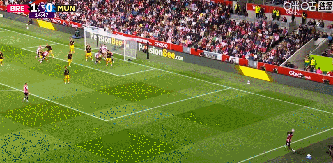 雷速体育9月27日讯 今晚19:30,英超第6轮,布伦特福德vs曼联。半场比赛,曼联暂1-2落后。上半场,红魔门将巴因迪尔高接低挡,屡次化解小蜜蜂攻势。