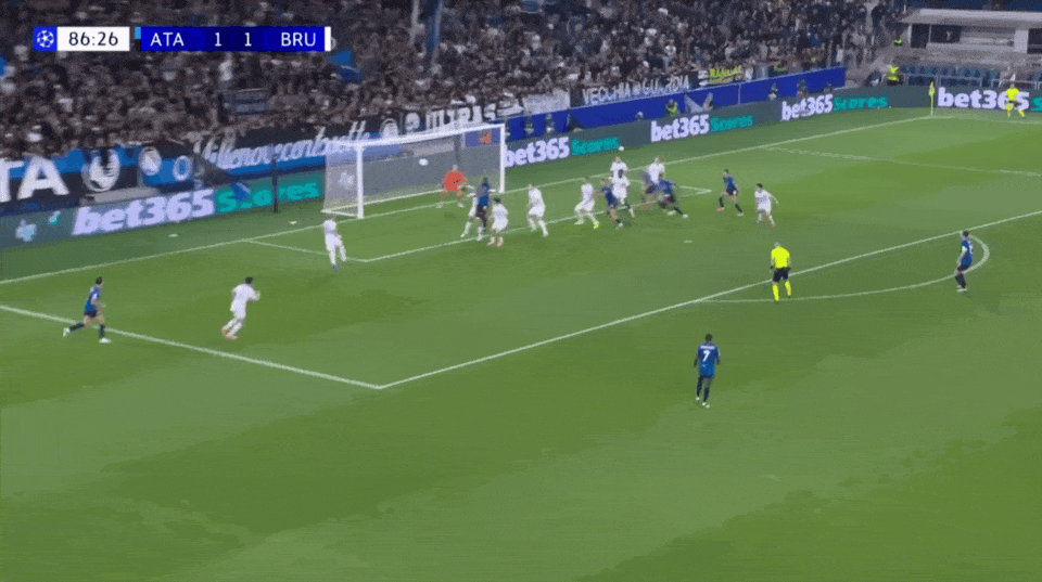 比赛最后时刻第87分钟,亚特兰大开出战术角球,帕萨利奇后点接队友头球空接完成绝杀。