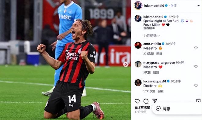 在加盟AC米兰之初,莫德里奇就明确表态自己来到红黑军团绝对不是养老,希望能够贡献余热,目前来看他几乎是打满了全部的每一分钟比赛,除了意大利杯轮休之外,剩下的表现真的不像是一个40岁的老将,反倒像是30岁精力正旺盛队员。而在对球员们的喊话以及给年轻人帮助方面,莫德里奇也是再努力,阿莱格里邀他加入圣西罗之初就明确谈到了其任务绝非是比赛多多拿分、,也很希望他能够在场上多喊话,多给年轻队员以辅助。
