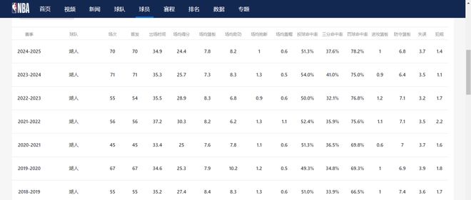 上赛季,他代表湖人出战70场常规赛,场均可得到24.4分7.8篮板8.2助攻。詹姆斯与湖人队的合同还剩一年时长。
