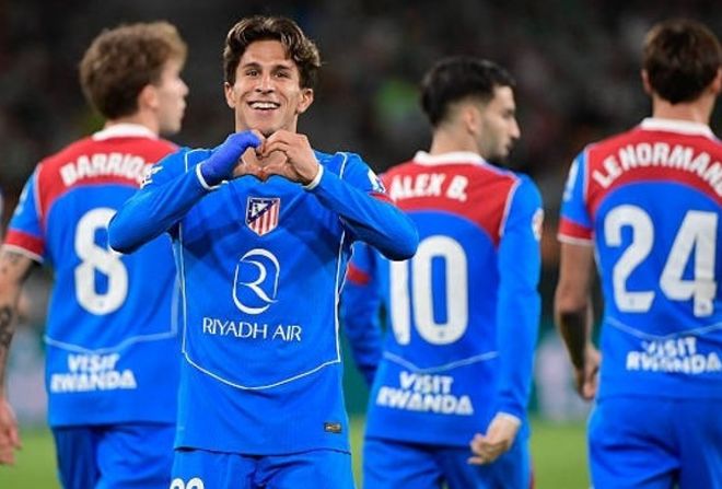 小西蒙尼今晨的进球来得很早,也很漂亮,凌空抽射破门,正儿八经的世界波——第3分钟,小西蒙尼弧顶处的不停球凌空抽射,让马竞1-0领先贝蒂斯。
