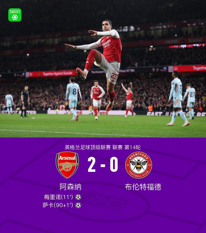 - 英超 | 剑南春阿森纳20布伦特福德,梅里诺传射,萨卡建功